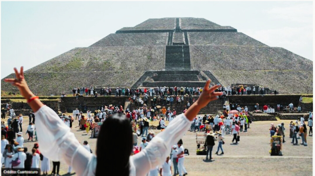 The spring equinox and the summer solstice are events of great cultural significance for Mesoamerican peoples, who built their temples aligned with key astronomical events. During these occasions in Teotihuacan, people gather at the site dressed in white often with symbolic accessories to “recharge their energy.”
